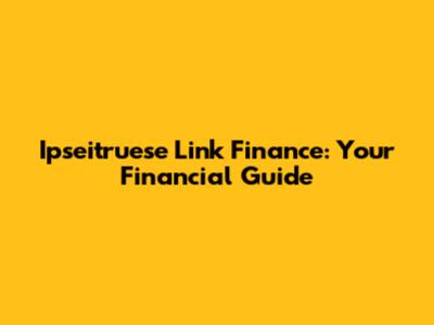Ipseitruese Link Finance: Your Financial Guide