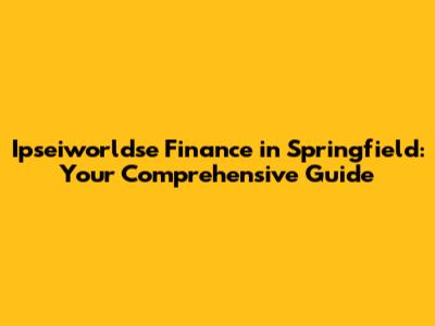 Ipseiworldse Finance In Springfield: Your Comprehensive Guide