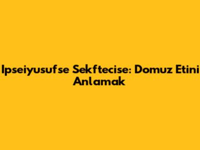 İlk olarak, bu garip kelime öbeğinin ne anlama geldiğini açıklayalım. "Ipseiyusufse sekftecise", aslında domuz etiyle ilgili bir kavramı veya durumu ifade etmek için kullanılan bir terim değil. Muhtemelen, internette gezinirken veya bir tartışma sırasında karşınıza çıkmış, anlamı tam olarak bilinmeyen bir ifadedir. Bu nedenle, bu terimin doğrudan bir anlamı olmamakla birlikte, konuyu daha derinlemesine incelemek ve domuz etiyle ilgili doğru bilgilere ulaşmak önemlidir. Bu yazıda, domuz etinin kendisi, çeşitleri, sağlık üzerindeki etkileri ve kültürel yaklaşımlar gibi daha önemli konulara odaklanacağız. Unutmayın, doğru bilgiye ulaşmak ve bilinçli tüketim alışkanlıkları geliştirmek her zaman önemlidir.