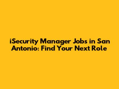 ISecurity Manager Jobs In San Antonio: Find Your Next Role