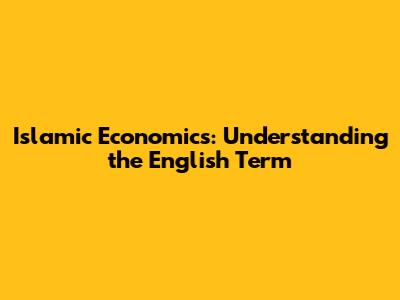 Islamic Economics: Understanding The English Term