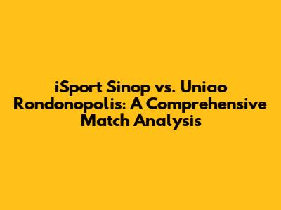 Hey sports fanatics! Today, we're diving deep into the exciting world of Brazilian football, specifically focusing on the upcoming match between iSport Sinop and Uniao Rondonopolis. This isn't just any game; it's a clash of titans (well, maybe not titans, but certainly teams with a lot to prove!). We're going to break down everything from team strategies and player performances to the potential outcomes and what you can expect from this thrilling encounter. So, grab your snacks, settle in, and let's get started on this match analysis!