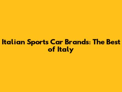 Italian Sports Car Brands: The Best Of Italy