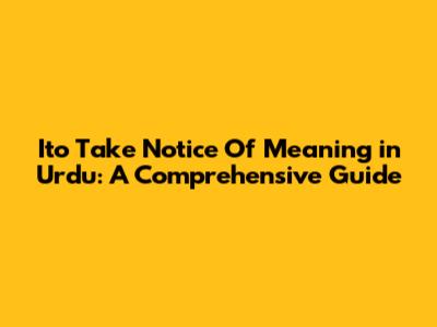 Ito Take Notice Of Meaning In Urdu: A Comprehensive Guide