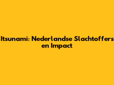 Itsunami: Nederlandse Slachtoffers & Impact