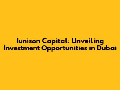 Iunison Capital: Investment Opportunities In Dubai