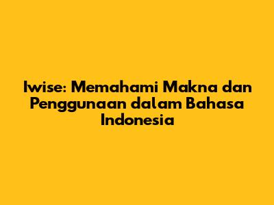 Iwise: Makna & Penggunaan Dalam Bahasa Indonesia