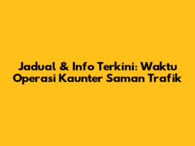 Jadual & Info Terkini: Waktu Operasi Kaunter Saman Trafik