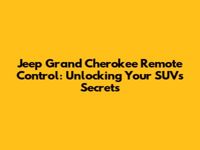 Understanding Your Jeep Grand Cherokee Remote Control