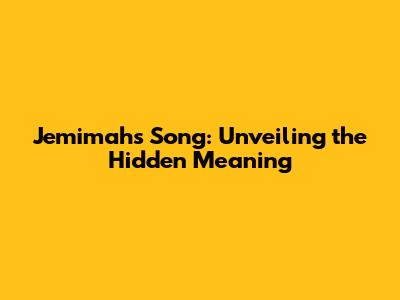 Jemimah's Song: Unveiling The Hidden Meaning