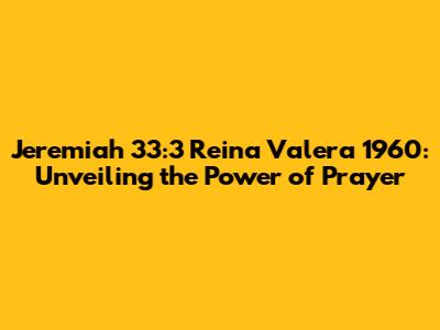 Hey guys! Have you ever stumbled upon a Bible verse that just sticks with you? For many, Jeremiah 33:3 in the Reina Valera 1960 version is one of those verses. It’s a powerful call to prayer, promising incredible revelations from God. Let's dive deep into this verse, break it down, and see how it applies to our lives today. We'll explore its historical context, unpack its meaning, and discover practical ways to integrate it into our daily walk with God.