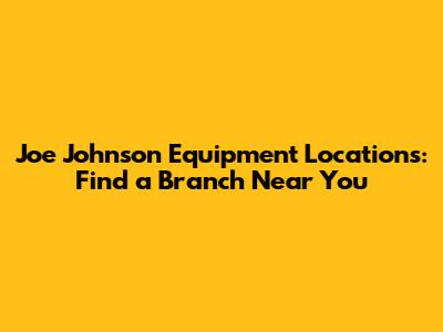 Joe Johnson Equipment Locations: Find A Branch Near You