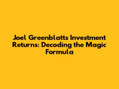 Joel Greenblatt's Investment Returns: Decoding The Magic Formula