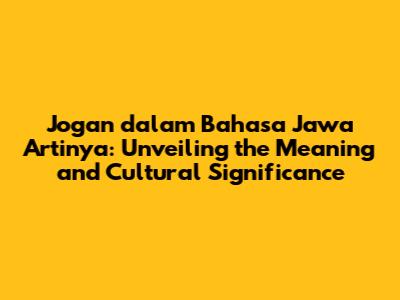 Hey guys! Have you ever stumbled upon the word "jogan" in a Javanese conversation and wondered what it meant? Well, you're not alone! Javanese is a rich language with layers of meaning, and understanding words like "jogan" can unlock a deeper appreciation for Javanese culture. In this article, we'll explore the meaning of jogan in Javanese, its cultural significance, and how it's used in everyday life. Let's dive in!