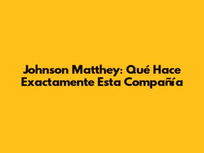 Johnson Matthey: Qué Hace Exactamente Esta Compañía