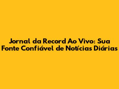 Jornal Da Record Ao Vivo: Notícias E Cobertura Completa