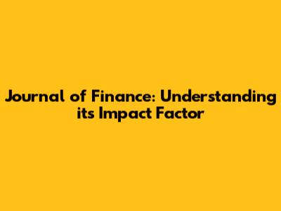 Journal Of Finance: Understanding Its Impact Factor