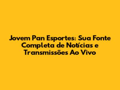 Jovem Pan Esportes é mais do que apenas um canal; é o seu portal para o mundo vibrante do esporte, oferecendo uma cobertura abrangente e em tempo real que mantém você conectado aos seus times e atletas favoritos. Seja você um fanático por futebol, um aficionado por basquete, ou um seguidor fervoroso de qualquer outra modalidade esportiva, a Jovem Pan Esportes garante que você nunca perca um lance, um gol, ou uma notícia importante. Com transmissões ao vivo de alta qualidade, análises aprofundadas e uma equipe de comentaristas e jornalistas experientes, a Jovem Pan Esportes se destaca como uma referência no jornalismo esportivo brasileiro.