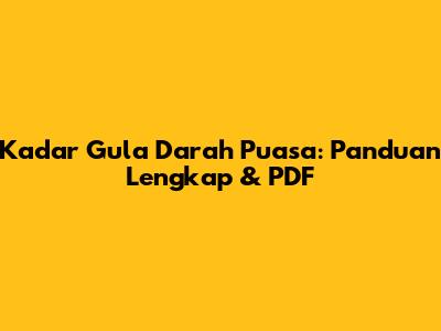 Kadar Gula Darah Puasa: Panduan Lengkap & PDF