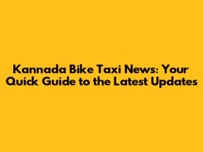 Kannada Bike Taxi News: Updates & Insights