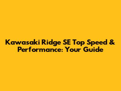 Kawasaki Ridge SE Top Speed & Performance: Your Guide