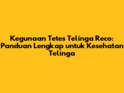 Kegunaan Tetes Telinga Reco: Panduan Lengkap Untuk Kesehatan Telinga