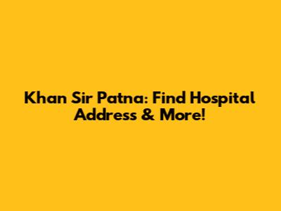 Khan Sir Patna: Find Hospital Address & More!