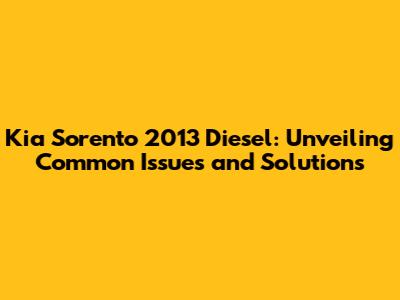 Kia Sorento 2013 Diesel: Common Problems & Solutions