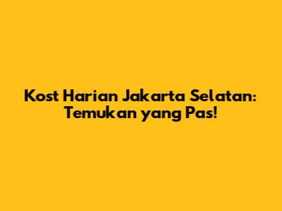 Kost Harian Jakarta Selatan: Temukan Yang Pas!
