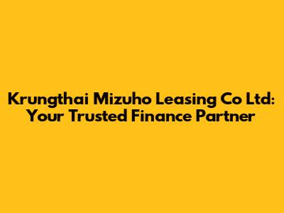 Hey guys! Ever heard of Krungthai Mizuho Leasing Co Ltd? If you're in the market for leasing solutions, or just curious about finance, you've come to the right place. Let’s dive into what makes this company a significant player in the leasing world.