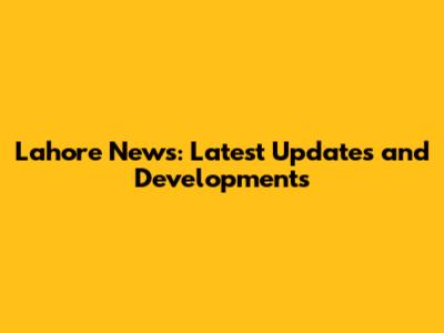 Lahore News: Latest Updates And Developments