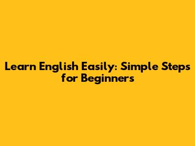 Learn English Easily: Simple Steps For Beginners