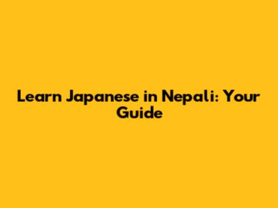 Learn Japanese In Nepali: Your Guide