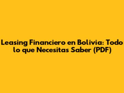 ¿Dónde Encontrar Información en PDF sobre Leasing Financiero en Bolivia?