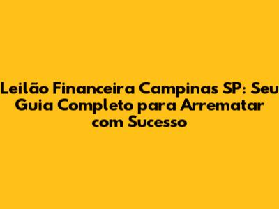 Leilão Financeira Campinas SP: Guia Completo Para Arrematar