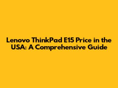 Lenovo ThinkPad E15 Price In The USA: A Comprehensive Guide