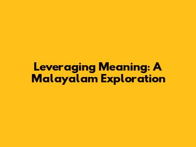 Hey guys! Ever wondered how language shapes our understanding of the world? Well, today we're diving deep into the beautiful world of Malayalam to explore the concept of "leveraging meaning." What does it really mean to leverage meaning in Malayalam, and how can we use this understanding to improve our communication and appreciation of this rich language?