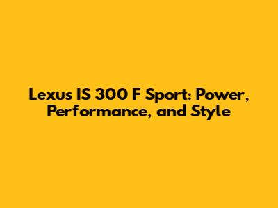 Lexus IS 300 F Sport: Power, Performance, And Style