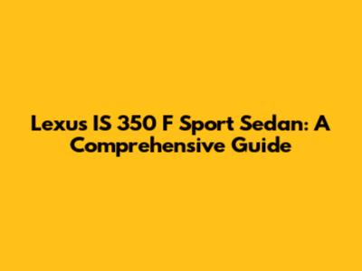 Lexus IS 350 F Sport Sedan: A Comprehensive Guide