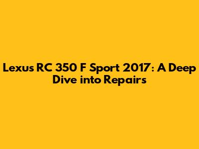Lexus RC 350 F Sport 2017: Comprehensive Repair Guide