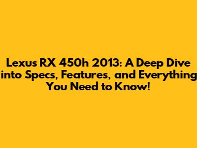 Hey car enthusiasts! Are you guys curious about the 2013 Lexus RX 450h? This hybrid SUV has been a popular choice for years, and for good reason! It combines luxury, fuel efficiency, and a comfortable driving experience. This article will break down everything you need to know about the 2013 Lexus RX 450h, from its specs and features to its performance and what makes it a standout in its class. So, buckle up, and let's get started!