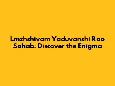 Lmzhshivam Yaduvanshi Rao Sahab: Discover The Enigma