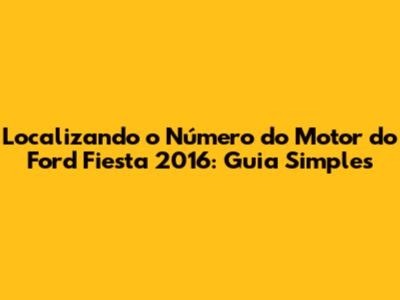 Localizando O Número Do Motor Do Ford Fiesta 2016: Guia Simples