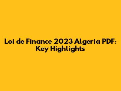 The Loi de Finance 2023 Algérie PDF represents a pivotal framework for Algeria's economic and financial trajectory in the coming year. By understanding its key highlights, businesses, investors, and stakeholders can navigate the evolving landscape and make informed decisions. From tax reforms to investment incentives and public spending priorities, the law's provisions have far-reaching implications that require careful consideration and strategic adaptation. Staying informed and proactive is essential for maximizing opportunities and mitigating risks in the Algerian market. Whether you're a business owner, investor, or simply interested in Algeria's economic development, the Loi de Finance 2023 Algérie PDF is a crucial document that warrants close attention.