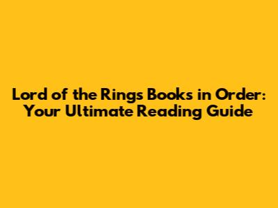 Lord Of The Rings Books In Order: Your Ultimate Reading Guide