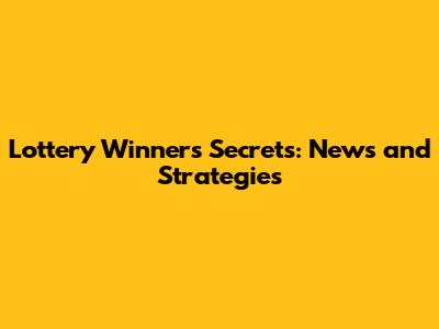 Lottery Winners' Secrets: News And Strategies