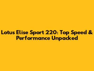 Lotus Elise Sport 220: Top Speed & Performance Unpacked