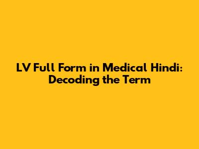 LV Full Form In Medical Hindi: Decoding The Term