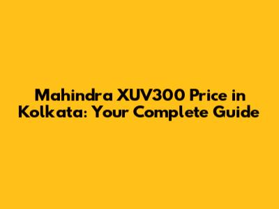 Mahindra XUV300 Price In Kolkata: Your Complete Guide