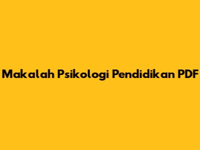 Makalah Psikologi Pendidikan: PDF Download